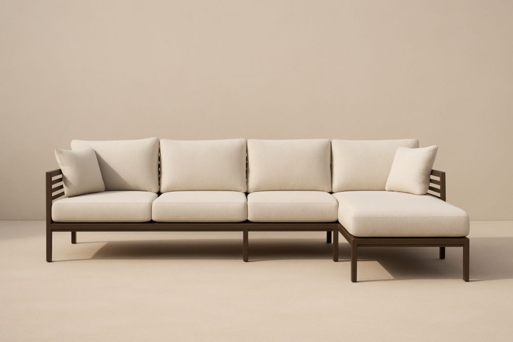 Divano Angolare da Esterno in Alluminio e Tessuto Acrilico Bianco