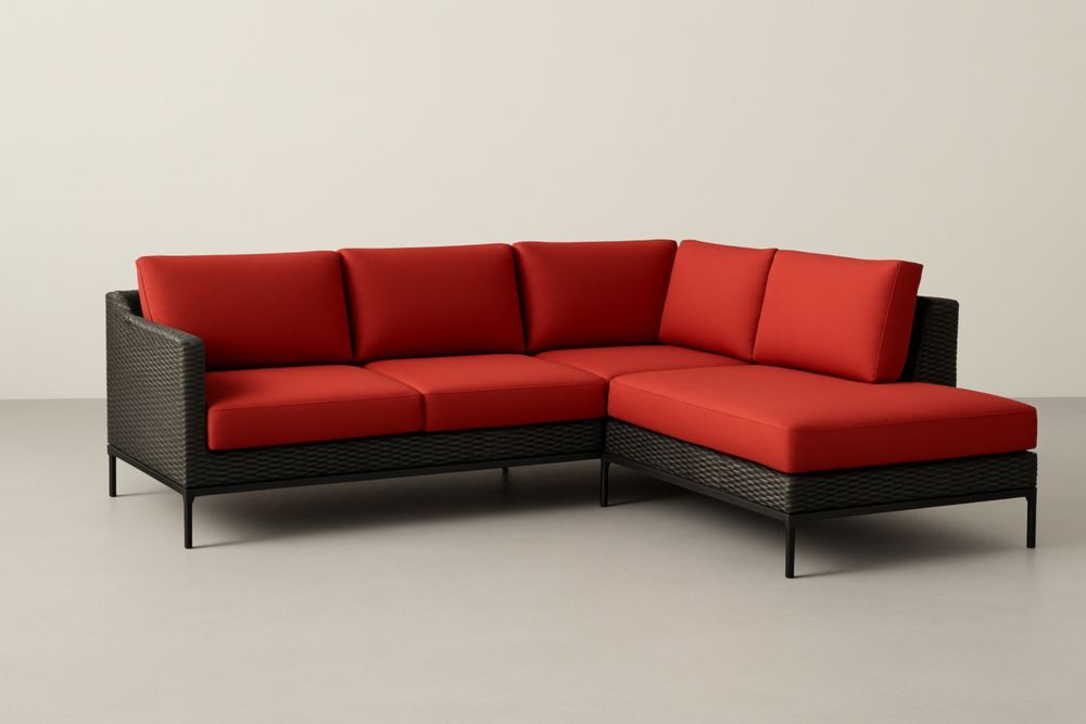 Divano angolare da giardino in acciaio e vimini sintetico rosso