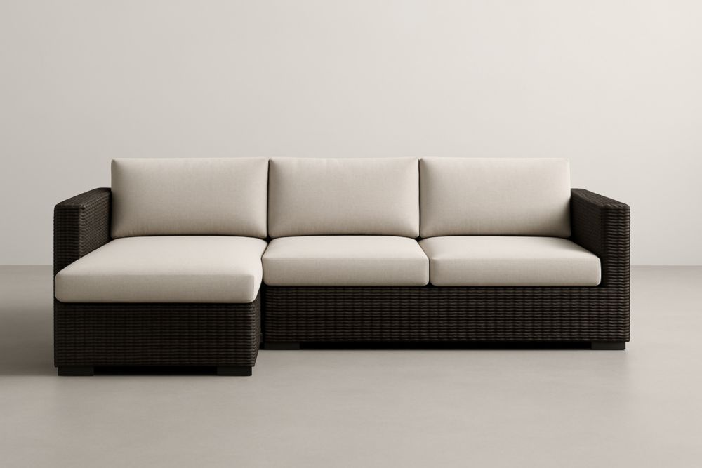 Divano angolare da giardino in rattan sintetico con cuscini beige
