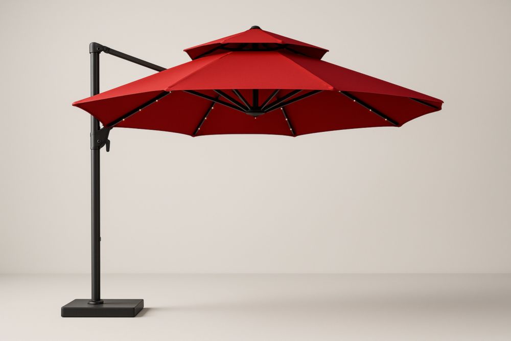 Ombrellone Laterale a Braccio in Poliestere Rosso con Struttura in Alluminio