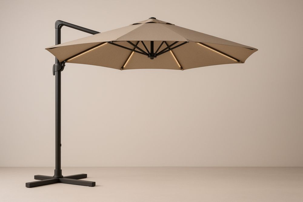 Ombrellone Laterale in Alluminio con Tessuto in Poliestere Beige Ø3 m con LED